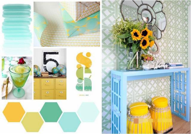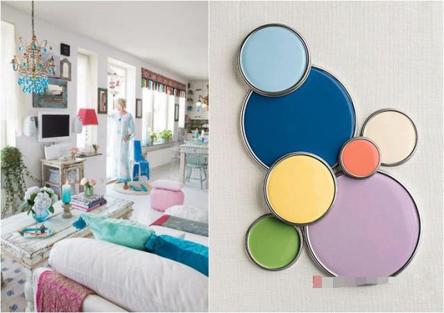 藍色與枚紅色、黃色搭配讓空間充滿時尚、青春活力,配以深藍色和白色讓空間沉穩(wěn)安靜下來,比例很重要。