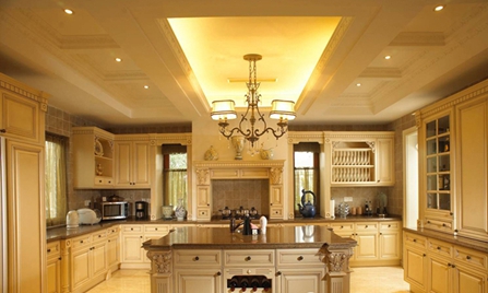 與普通消費(fèi)者相比,別墅的房主更注重整體廚房的美學(xué)效果、藝術(shù)協(xié)調(diào)和品牌。簡(jiǎn)單地說即是整體的設(shè)計(jì)感、個(gè)性化,同時(shí)功能要齊全。廚房可以顯示主人的品位,這種品位主要體現(xiàn)在一些有創(chuàng)意的設(shè)計(jì)上,別墅廚房吊柜可以設(shè)計(jì)一些玻璃門或吊格,柜內(nèi)安裝圓杯燈,便于存放收藏品或書籍。