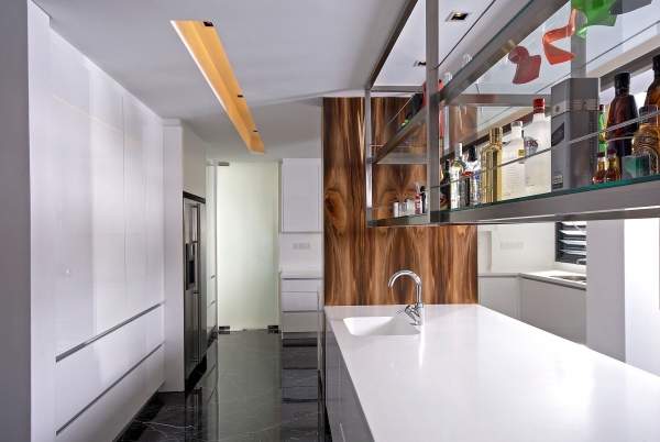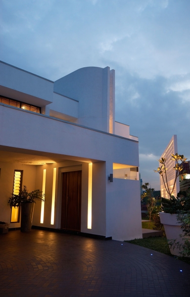 這個4500平方英尺的房子建在8000平方英尺的一個緩坡上降落。房子的方向是特殊的,因為它并不能面對服務道路,但有一個45度的傾斜。它能達到兩個目標:第一,寬度和建筑物的大小是優化;其次,它確保隱私的人。建筑結構保存雖然增加了一些微小的擴展。這房子被漆成白色,這樣一個能欣賞強壯的架構形式。黑暗的鋁框玻璃窗被安裝在眾議院。以補充現代形式、景觀建筑都保持清潔。蓄意使用戲劇性的Serralunga盆與Zamia紙板棕櫚成為焦點的花園。