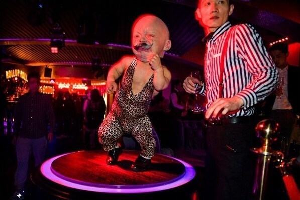 上海奢客地(Cirque le Soir)夜總會內,一名戴面具的侏儒。