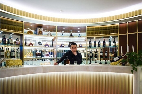 上海,保羅·胡在自己公司的吧臺內。